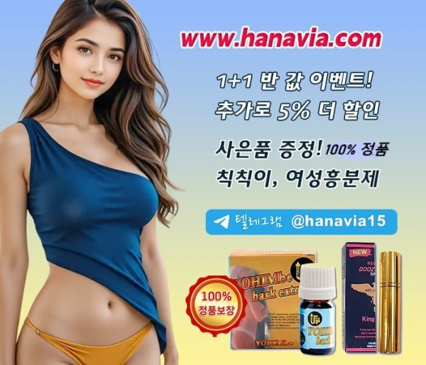 현재 1+1 반 값 특가 이벤트가 진행 중이며, 추가 5% 할인 혜택도 적용됩니다. 사은품으로 칙칙이와 여성흥분제가 제공되며, 서울·경기 지역 퀵배송도 가능합니다. 평일 14:00~23:00, 주말 및 공휴일 배송 역시 가능합니다.